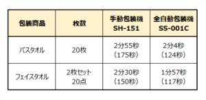 ■ 検証1:バスタオル 20枚の連続包装