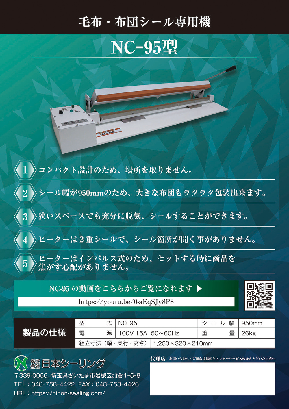 型式 | NC-95型 | シール幅 | 950mm |